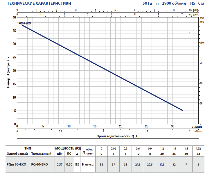 • Напор до 38 м
